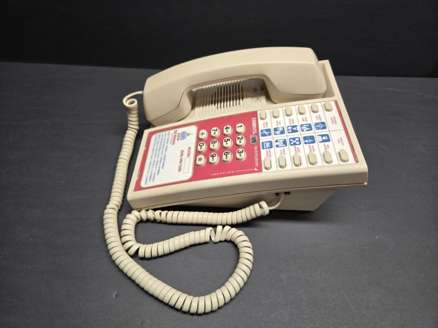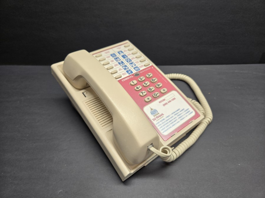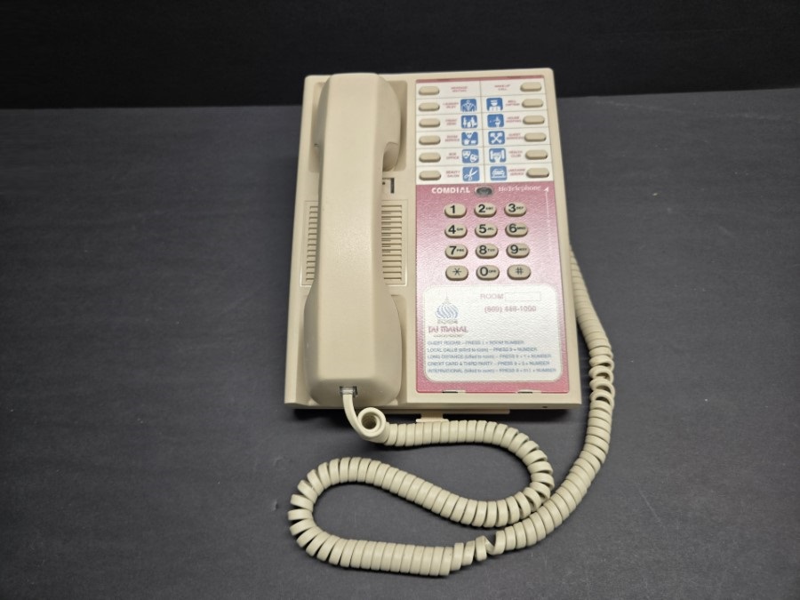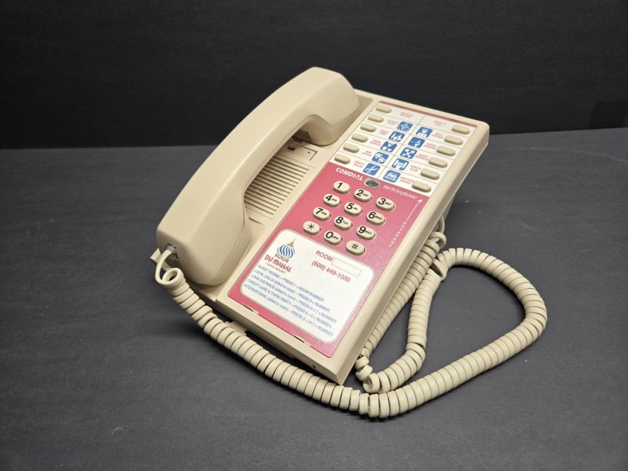 This 1996 Comdial hotel telephone is a surviving piece from the iconic Trump Taj Mahal Hotel and Casino, once a centrepiece of Atlantic City’s vibrant casino scene.