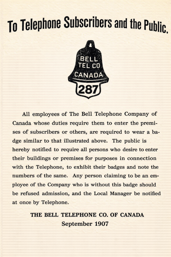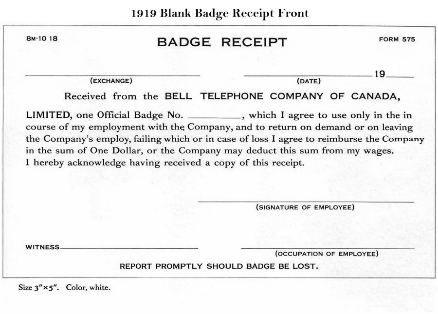 Registry of The Bell Telephone Company of Canada Employee Badges.